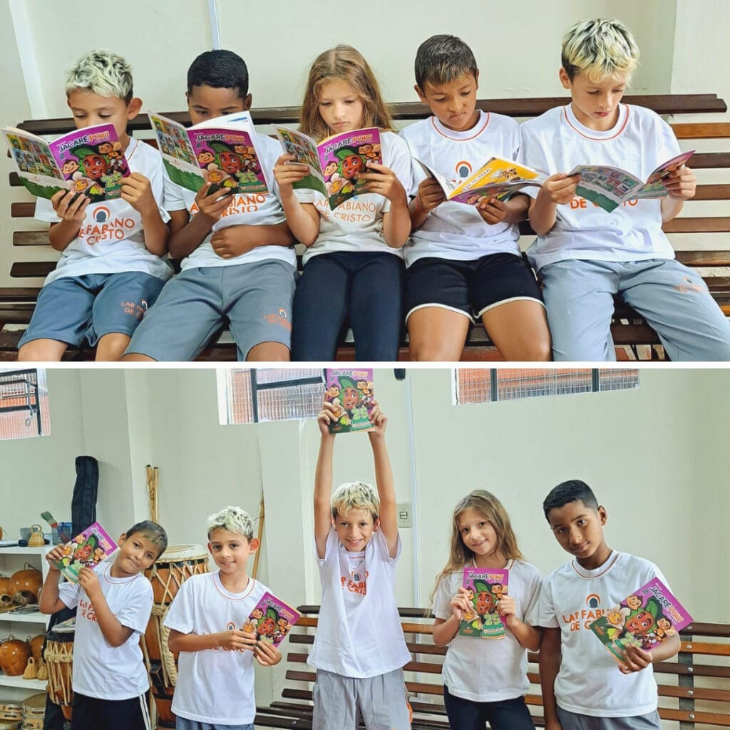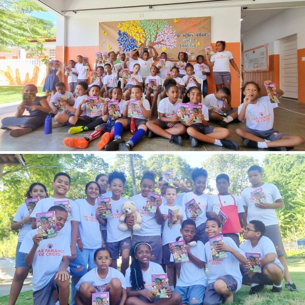 Veja, a seguir, algumas fotos da entrega das revistas em quadrinhos “Jacaré Poió e sua turma” para os coparticipantes do Lar Fabiano de Cristo.