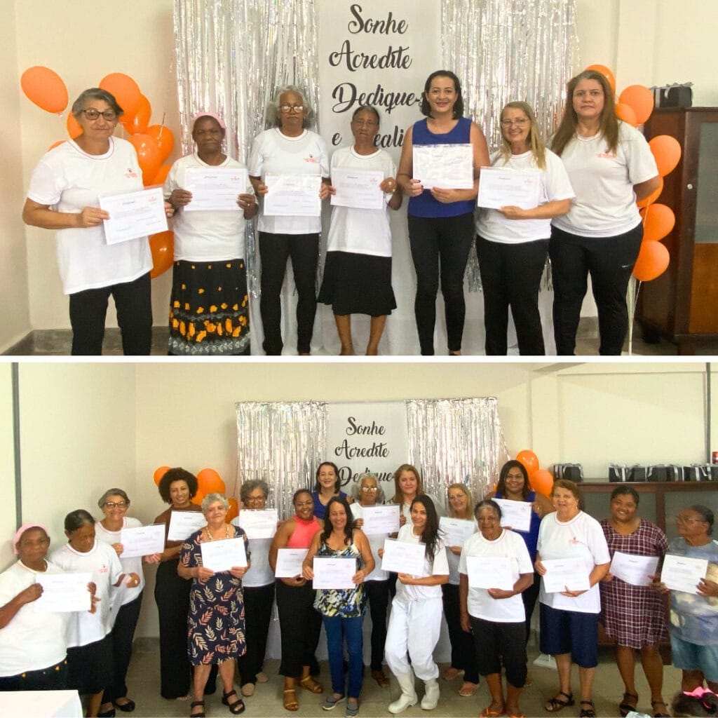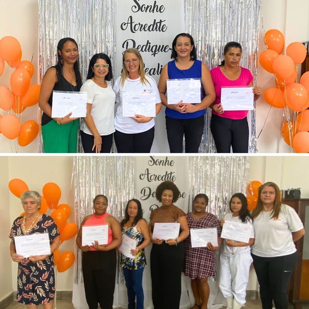 Em relação aos cursos realizados por meio das doações recebidas, o Um Grão possibilitou a oferta de sete cursos: elétrica predial, na Casa de José, em Belém (PA), no primeiro e no segundo semestre; camareira, na Casa de André Luiz, em Passa Quatro (MG), no primeiro e no segundo semestre; artesanato, na Casa de Arnaldo São Thiago, em Florianópolis (SC); e embelezamento, na Casa de Virgínia Smith, em Fortaleza (CE), também realizado nos dois semestres.