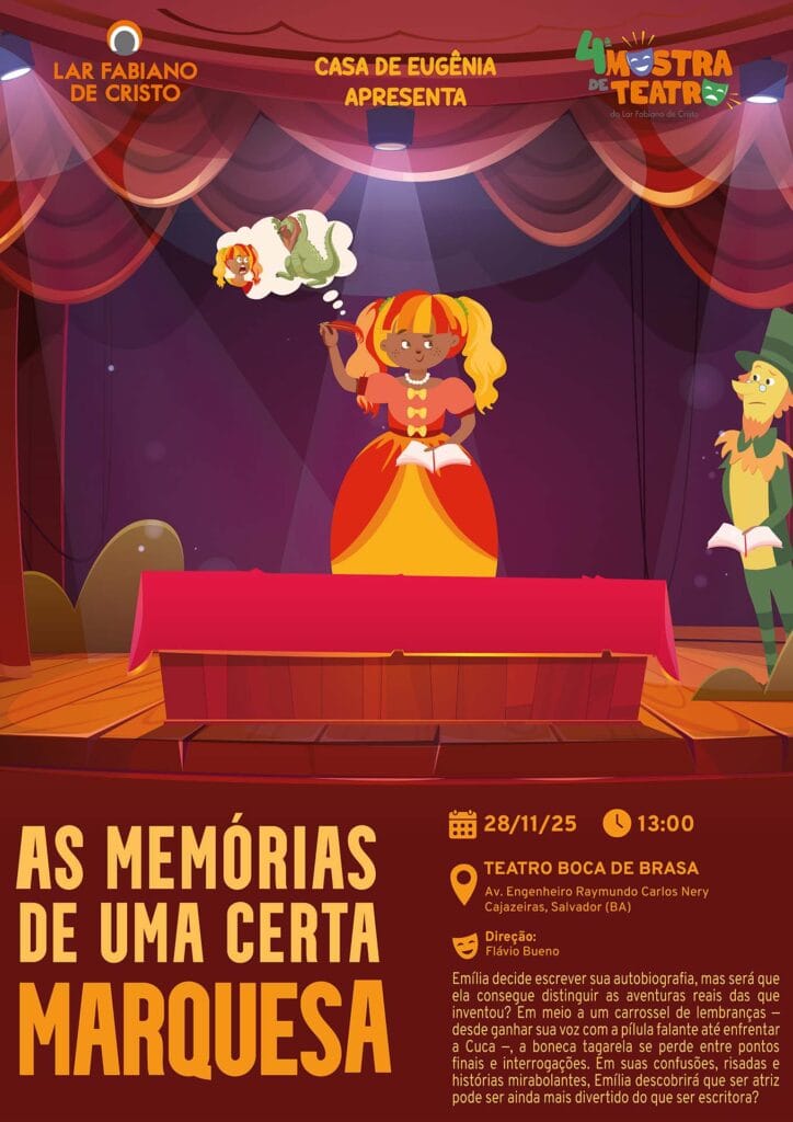 Em 2025, ao longo do mês de novembro, dezesseis Unidades do Lar Fabiano de Cristo apresentaram peças teatrais na 4ª Mostra de Teatro. A temática norteadora deste ano foi a obra de Monteiro Lobato, em sintonia com a VII edição da Festa Literária do Jacaré Poió, a FLIPOIÓ, que também celebrou a obra do renomado escritor paulista.