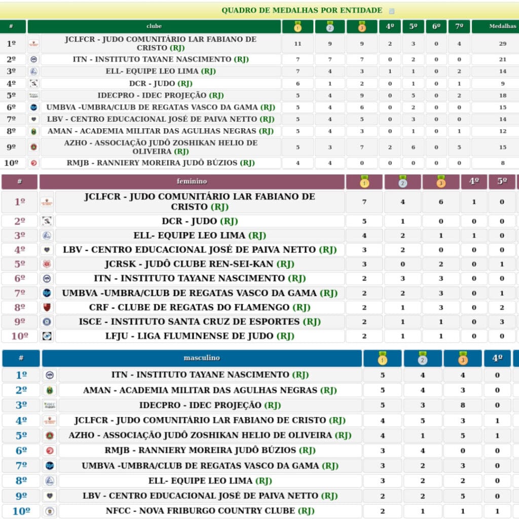 No total, o Projeto Ippon do Lar Fabiano de Cristo conquistou 29 medalhas, sendo onze de ouro, nove de prata e nove de bronze. A equipe feminina do LFC ficou também em primeiro lugar no ranking, com sete medalhas de ouro, e a equipe masculina ficou em quatro lugar, com quatro medalhas de ouro.