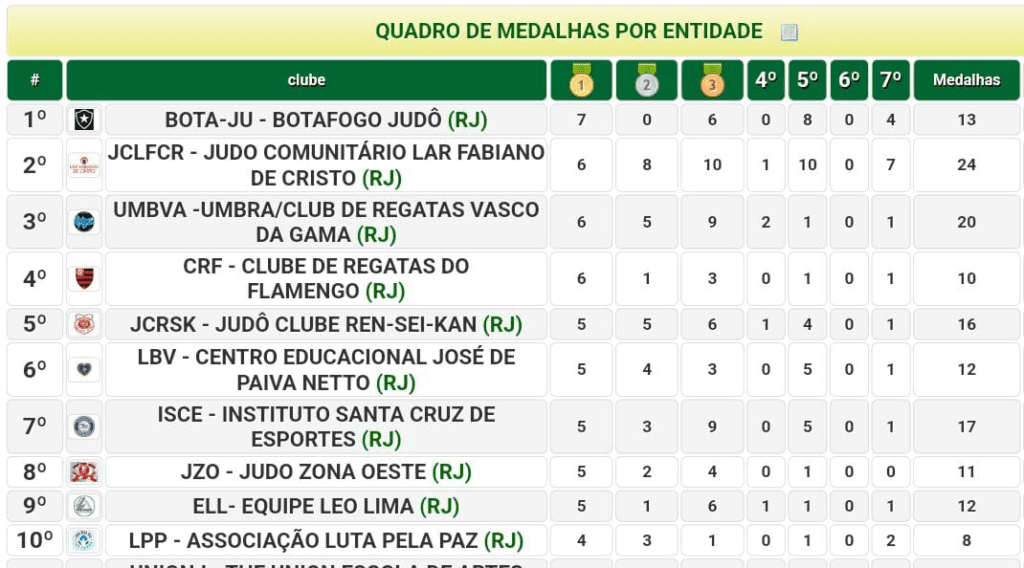 No total, 46 judocas das Casas de Pedro Richard, no Rio de Janeiro (RJ), Mãe Marocas, em Duque de Caxias (RJ), e Francisco de Assis, em Nova Iguaçu (RJ), conquistaram 6 medalhas de ouro, 8 de prata e 10 de bronze.